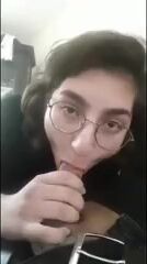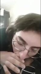 French Amateur With Glasses Gets Convinced To Give A POV Blowjob To Her Neighbour