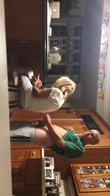 Descritption: Real Son wanks behind Mom and cums